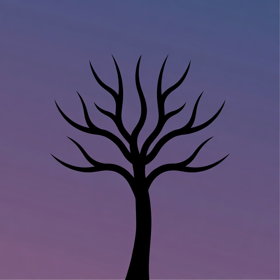 bare branches, barren tree, black tree, clipart, dead tree, gradient background, illustration, isolated background, nature, outline tree, purple background, silhouette, simple tree, winter tree, tree