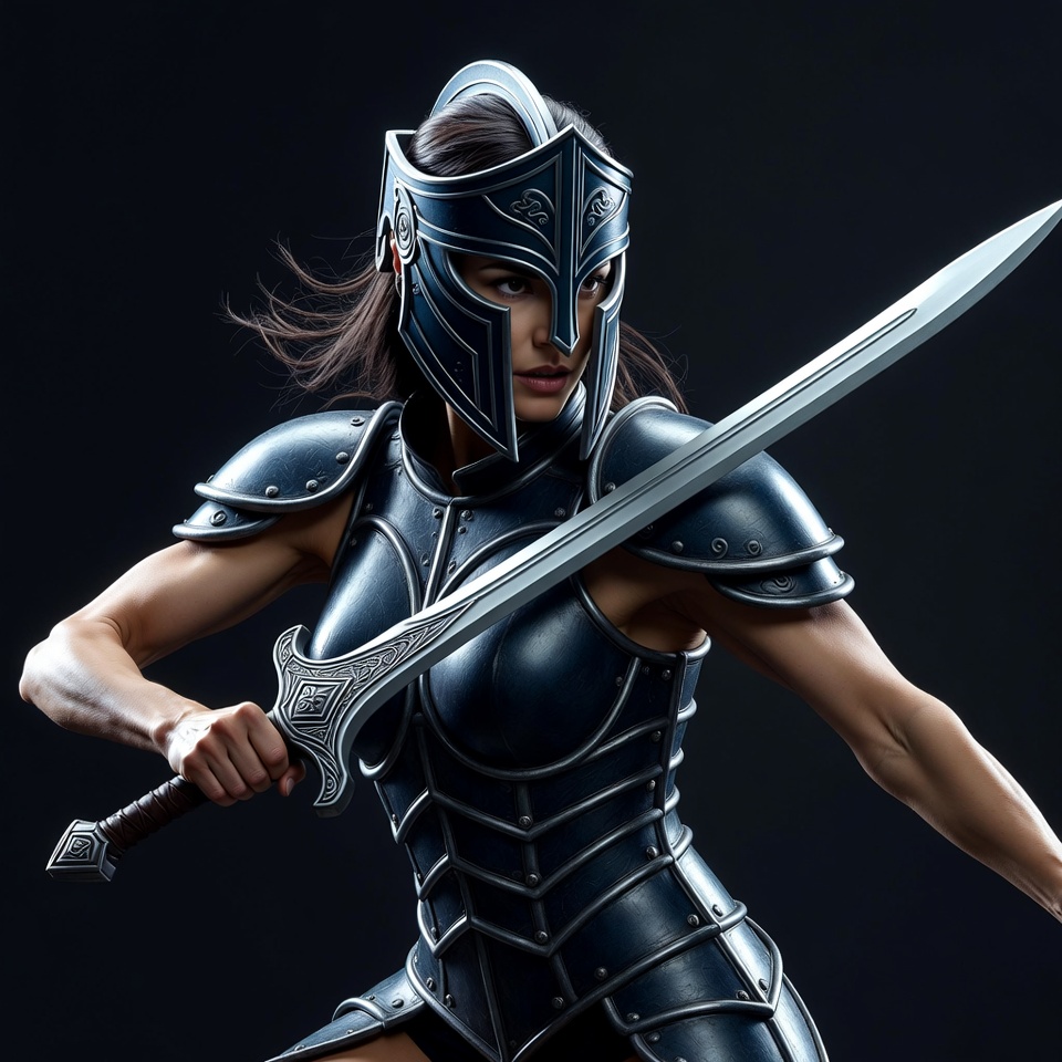 Female warrior in armor holding sword
