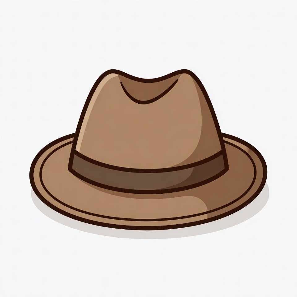 brown hat, cartoon hat, clipart, fashion accessory, fedora, hat, illustration, isolated background, mens hat, vintage hat, wide brim hat, fedora hat