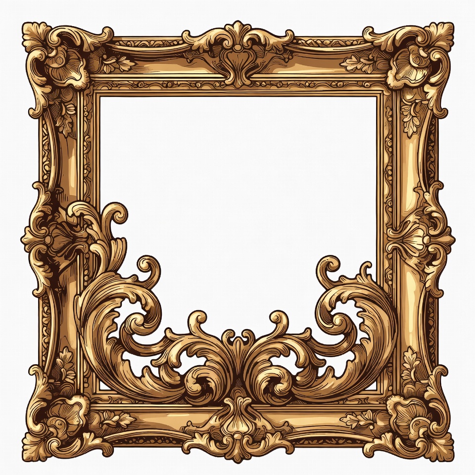 antique frame, baroque frame, border, clipart, decorative frame, elegant frame, empty frame, filigree frame, floral motifs, gold frame, golden frame, illustration, isolated background, luxury frame, ornate frame, photo frame, rococo frame, scrollwork frame, vintage frame, picture frame
