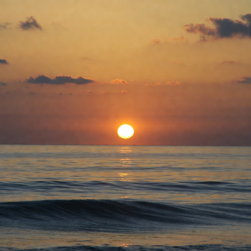 beach sunset, calm sea, clouds, evening sky, horizon, landscape, nature, ocean, orange sky, reflection, sea, sky, sun, water, waves, yellow sun, sunset