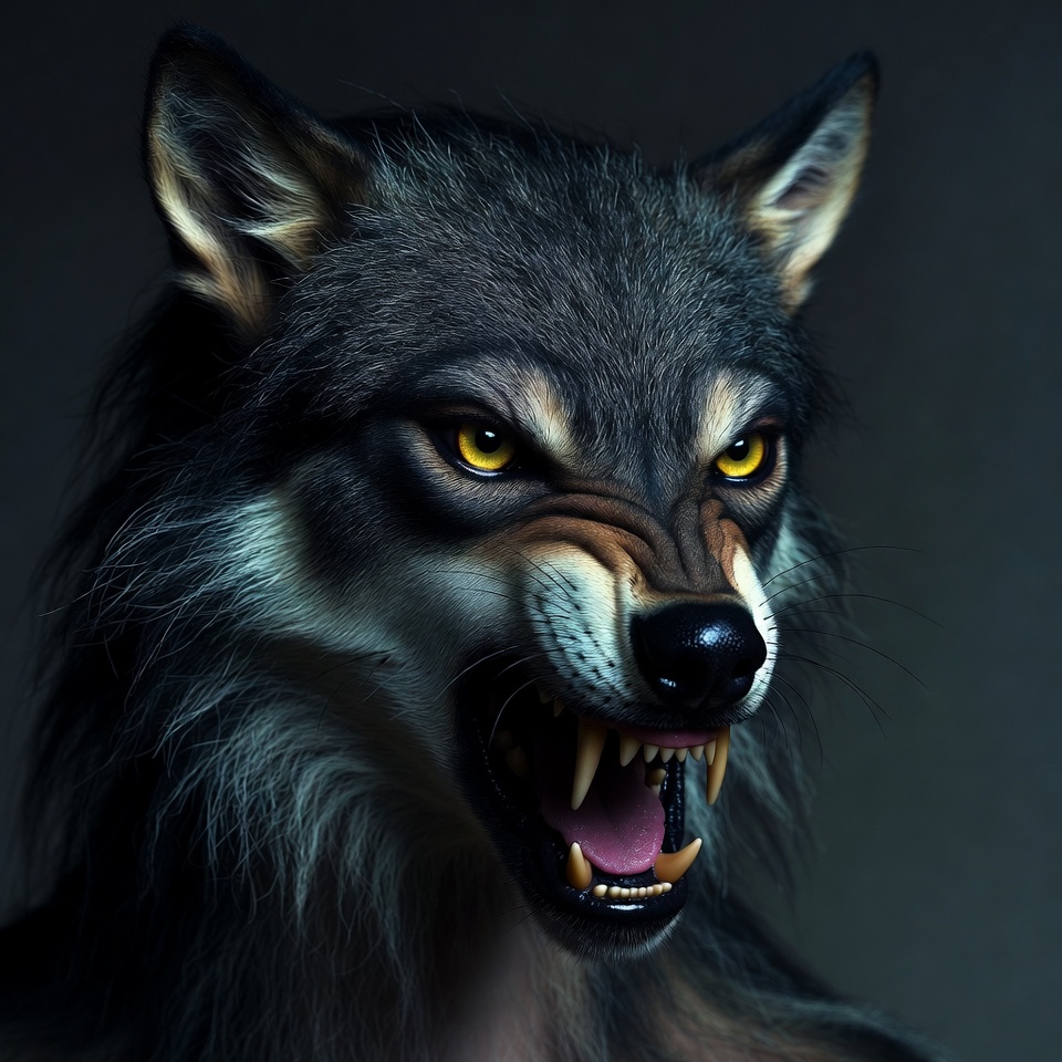 aggressive wolf, animal, canine, dark background, digital art, fangs, fur, gray wolf, growling wolf, illustration, isolated background, mammal, predator, snarling wolf, wildlife, wolf head, wolf portrait, yellow eyes, wolf