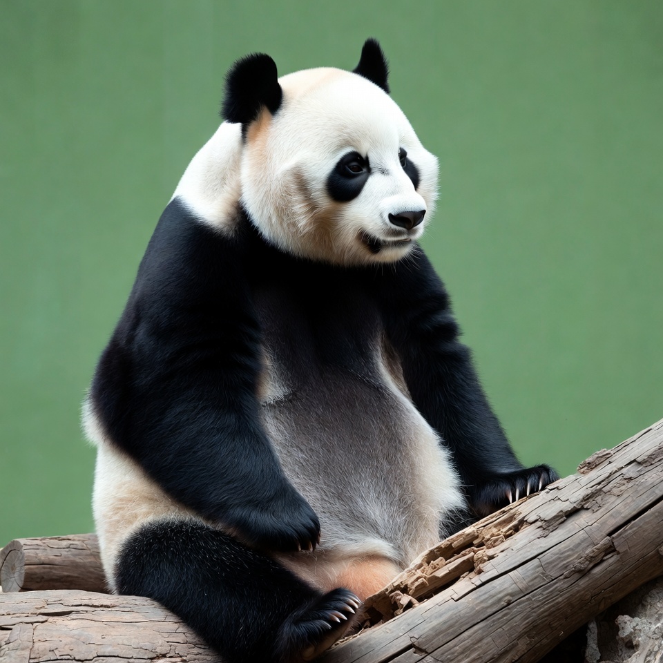 animal, bamboo eater, black fur, cute panda, endangered animal, furry animal, giant panda, green background, log, panda bear, sitting, white fur, wildlife, zoo animal, panda