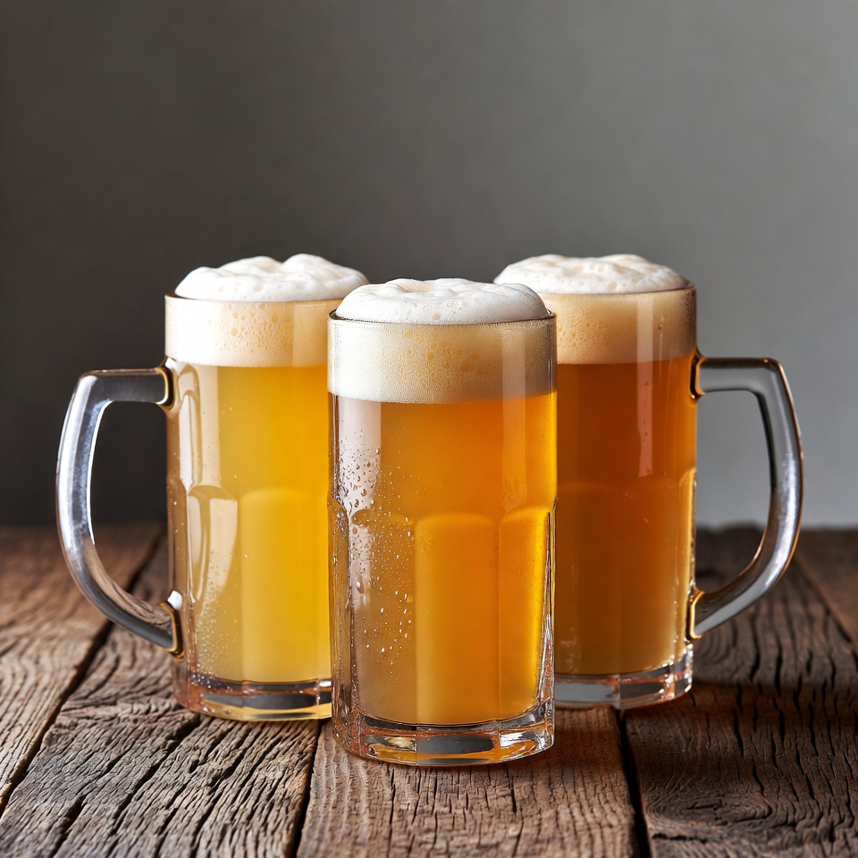 Three Beer Glasses with Foam