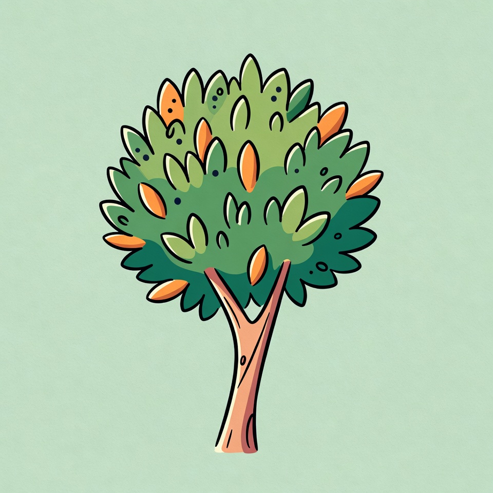 brown trunk, cartoon tree, clipart, fruit bearing tree, fruit tree, green leaves, illustration, isolated background, leafy tree, nature illustration, oranges, tree, vector tree, vibrant colors, orange tree