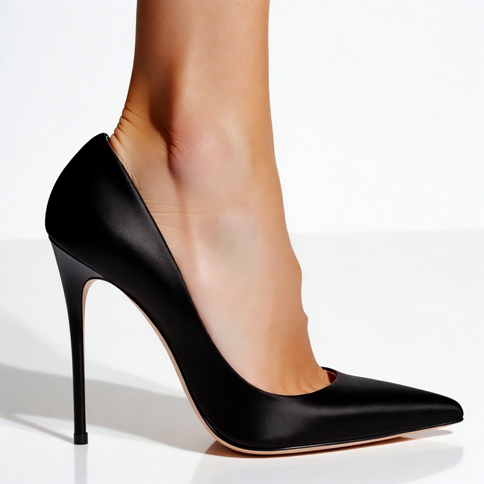 black high heel, black pump, close-up, elegant shoe, fashion, female, foot, footwear, heel shoe, high heel, isolated background, leg, pointed toe, pump shoe, shiny shoe, stiletto, stilettos, toned leg, women's footwear, woman