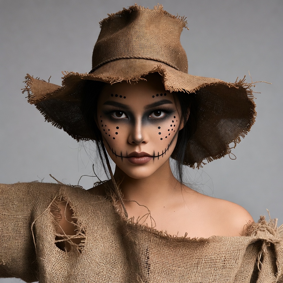 Woman in Scarecrow Costume with Face Paint