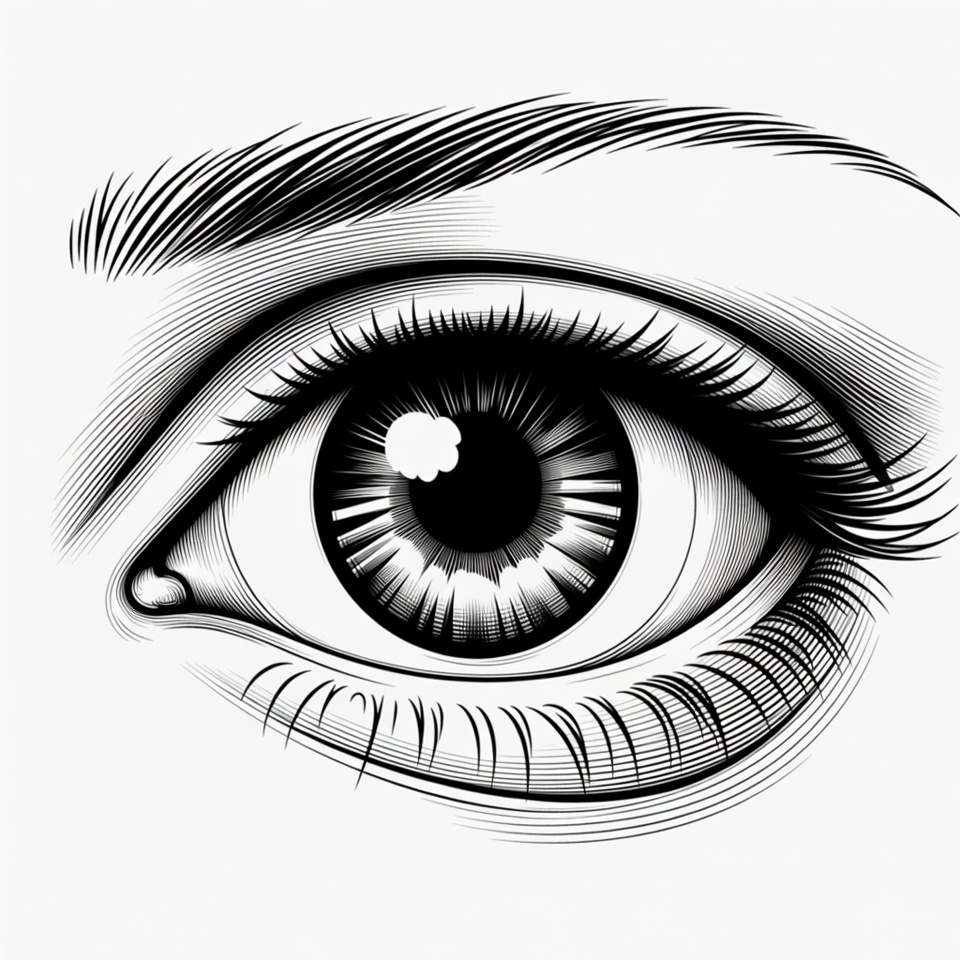 anatomy, black and white, clipart, closeup, detailed, eyebrow, eyelashes, human eye, illustration, ink drawing, iris, isolated background, portrait, pupil, realistic, eye