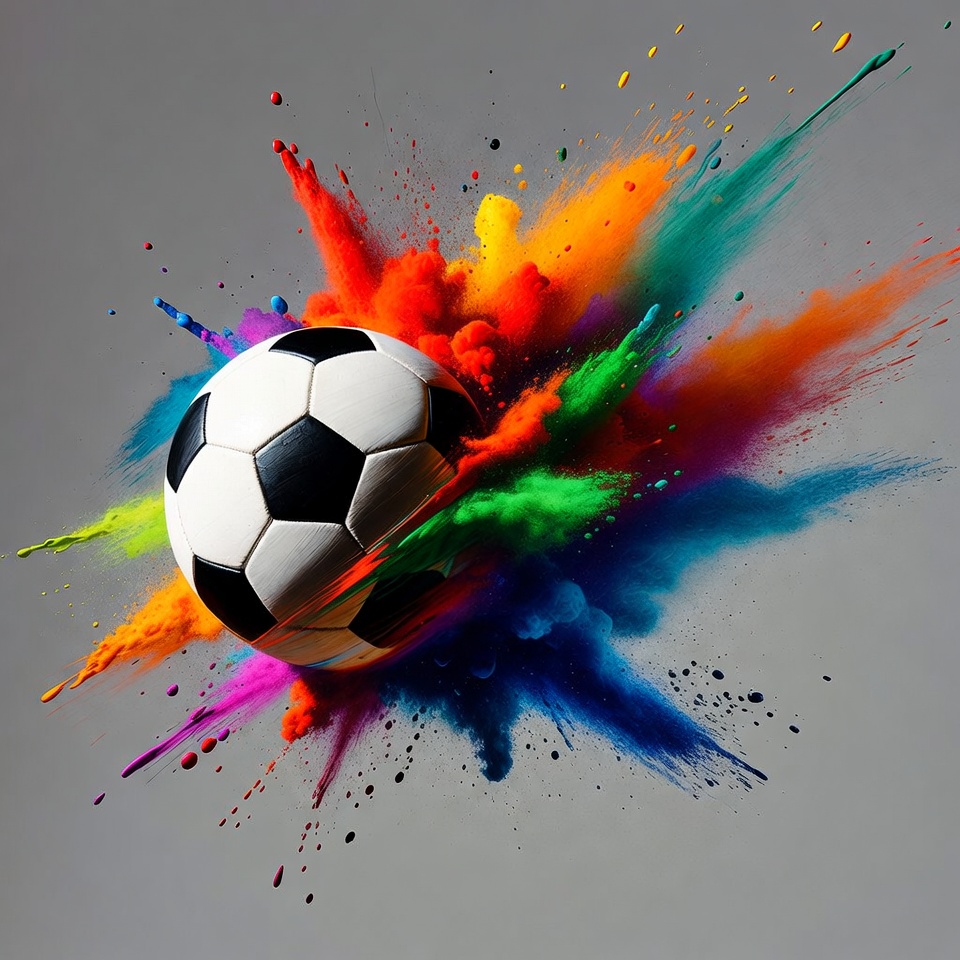 Soccer Ball Exploding Colorful Paint