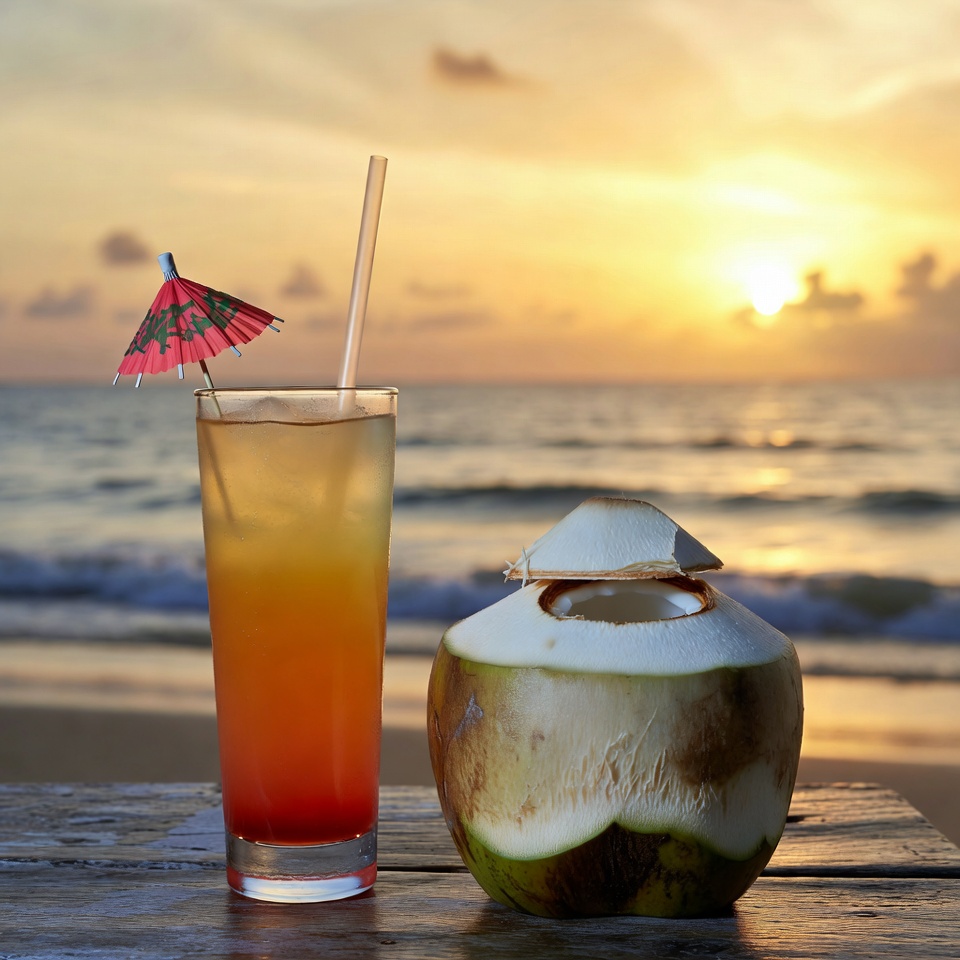 Coconut and Sunset Cocktail Beach