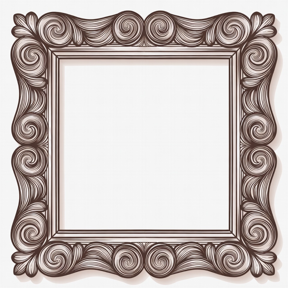 art frame, baroque frame, blank frame, brown frame, clipart, decorative frame, elegant border, empty frame, fancy frame, floral motifs, frame border, illustration, isolated background, ornate frame, rectangular frame, rococo style, swirling design, vector art, vintage frame, picture frame