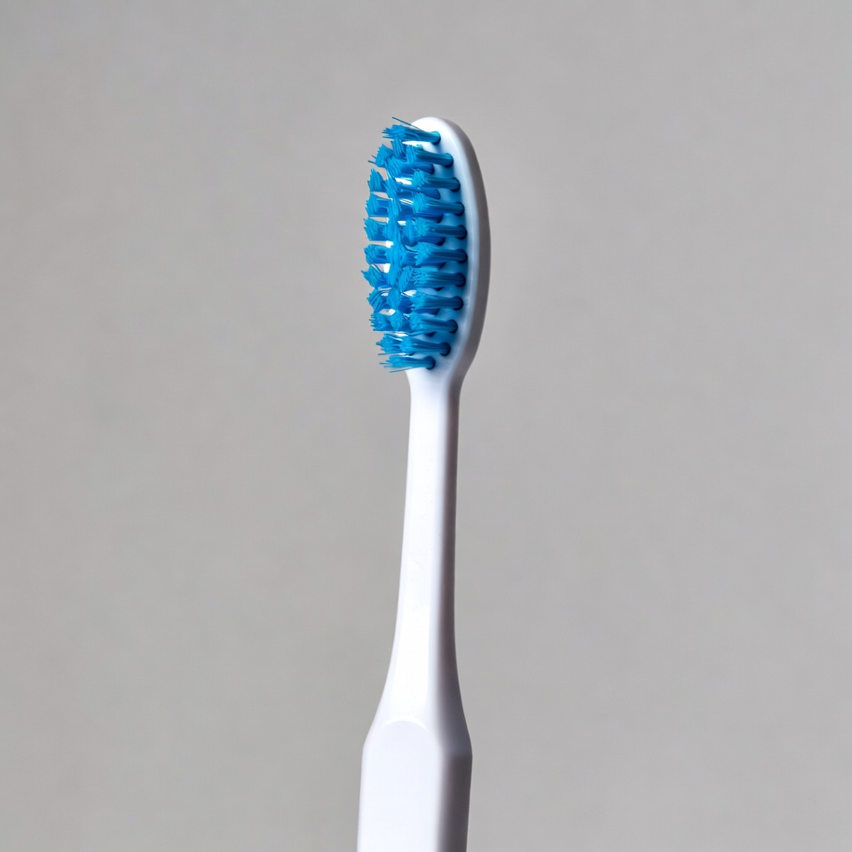Blue toothbrush on white handle