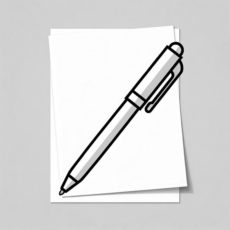 ballpoint pen, blank paper, clipart, document, drawing, graphic, icon, illustration, ink pen, isolated background, line art, office supplies, outline, paper, simple, stationery, vector, white paper, writing, pen