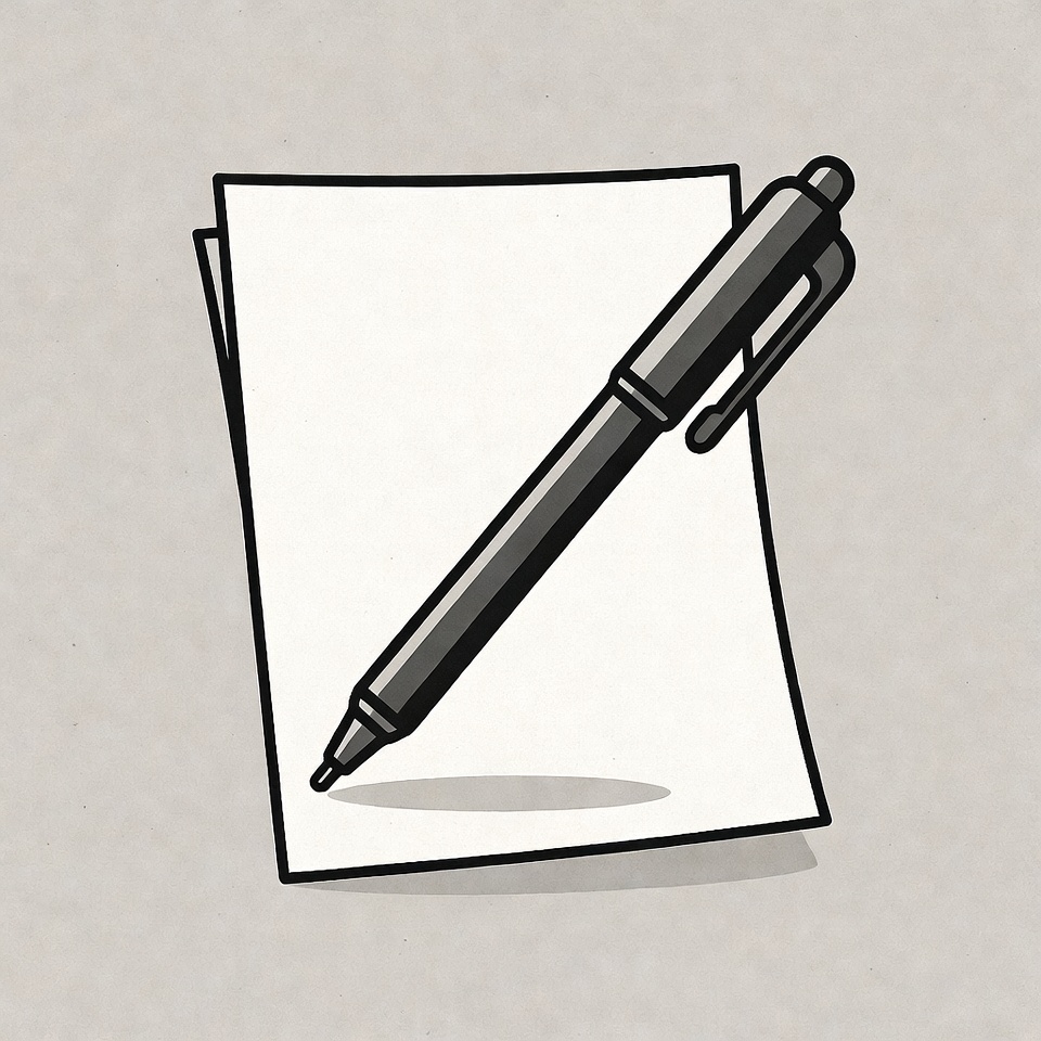 black pen, blank paper, clipart, drawing, illustration, isolated background, line art, notepad, office supplies, paper, stationery, writing, pen