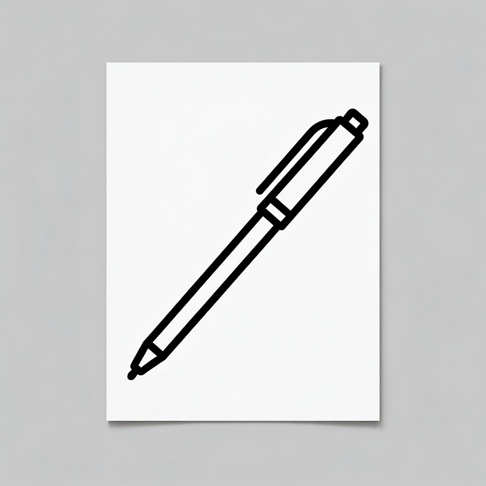 ballpoint pen, black outline, clipart, icon, illustration, isolated background, line art, office supply, simple drawing, stationary, vector, writing pen, pen