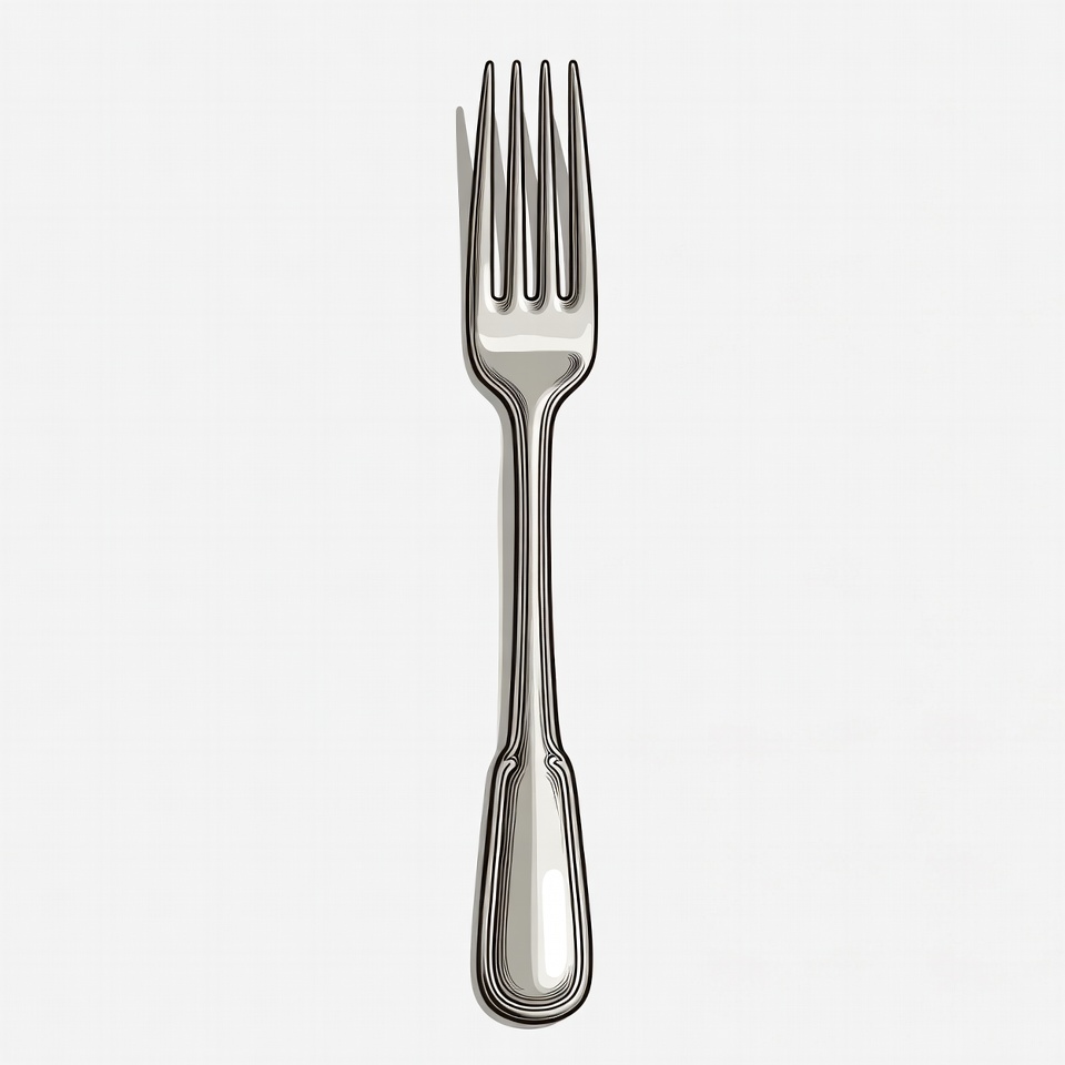 clipart, cutlery, dinner fork, eating utensil, illustration, isolated background, kitchen utensil, metal fork, metallic, shiny, silver fork, tableware, vector graphic, white background, fork