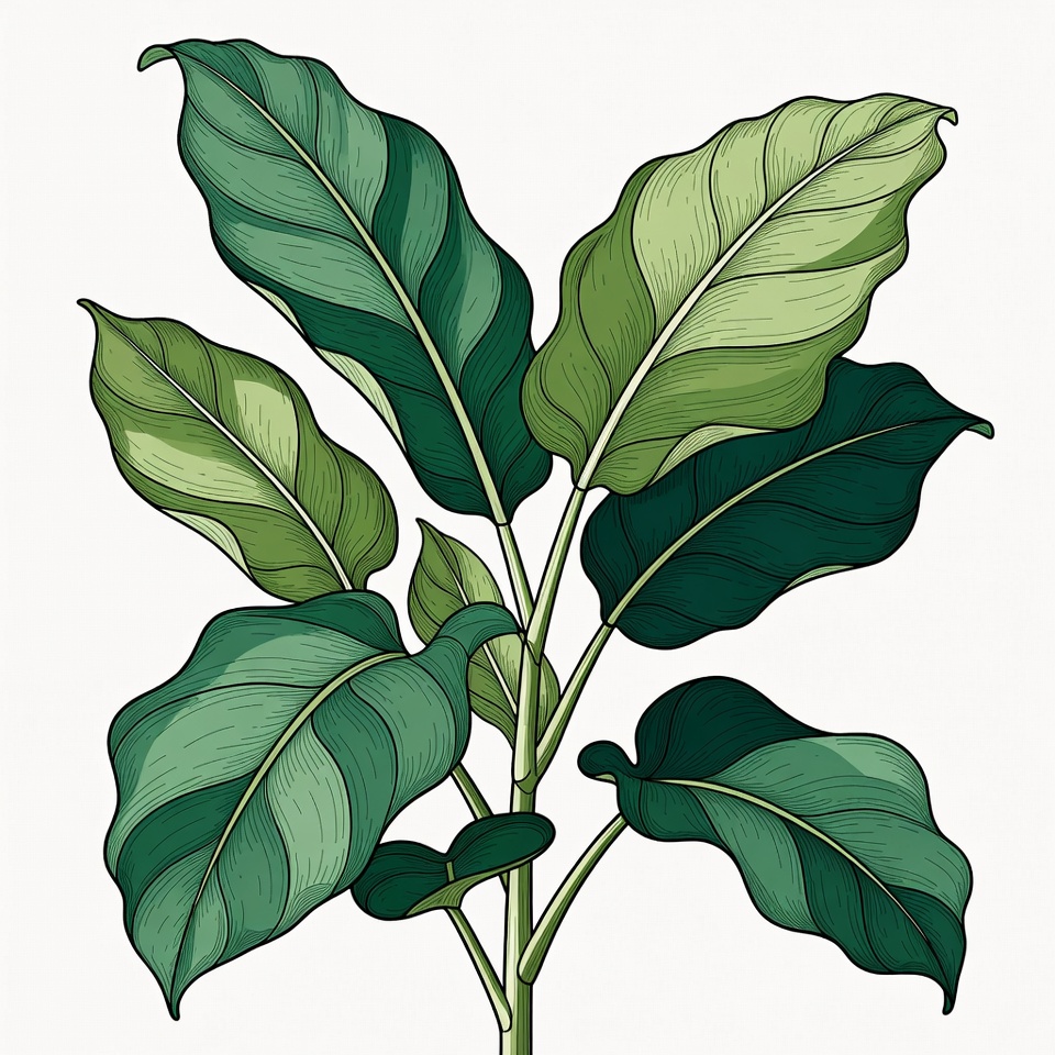 botanical art, broad leaves, clipart, foliage, green leaves, green plant, houseplant, illustration, isolated background, leaf illustration, leaf veins, nature drawing, tropical plant, veined leaves, plant