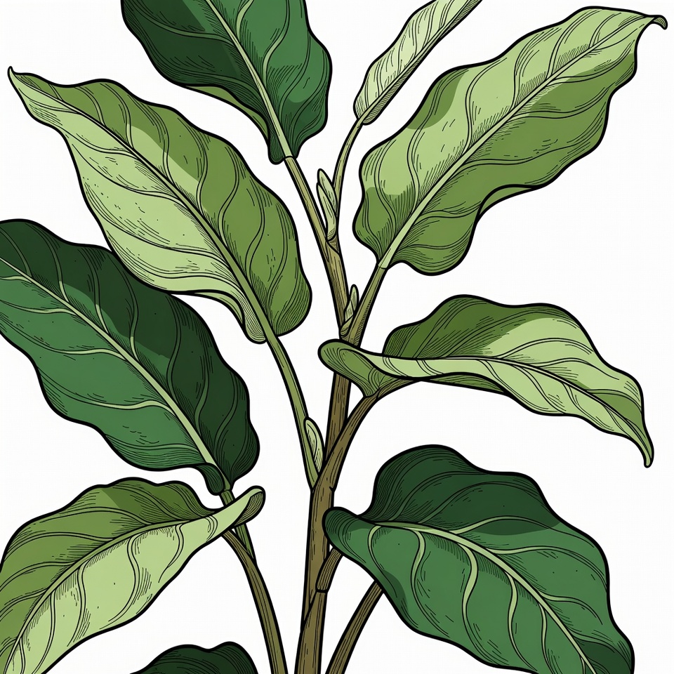 botanical illustration, broad leaves, clipart, foliage, green foliage, green leaves, houseplant, illustration, isolated background, leaf veins, leaves, plant leaves, tropical plant, vector art, philodendron