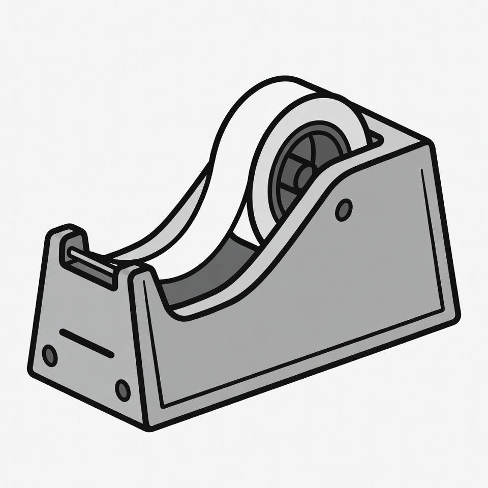 adhesive tape, clipart, cutting edge, desk accessory, gray dispenser, illustration, isolated background, office supply, plastic dispenser, scotch tape, stationery, white tape roll, tape dispenser