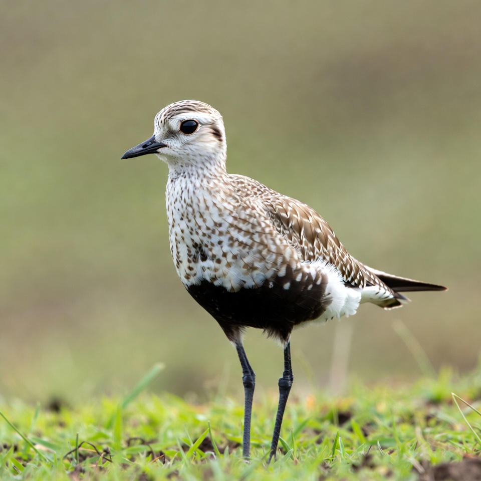 animals, avian, beak, bird, black bill, black legs, brown bird, eyes, feathers, grass field, green grass, isolated background, nature, outdoors, plover, shorebird, spotted plumage, standing bird, white bird, wildlife, killdeer