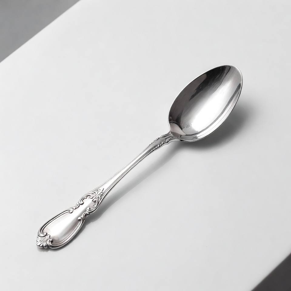 cutlery, dining spoon, elegant spoon, engraved handle, fancy spoon, floral design, isolated spoon, metal spoon, ornate spoon, polished silver, silverware, soup spoon, table spoon, utensil, vintage spoon, white background, silver spoon