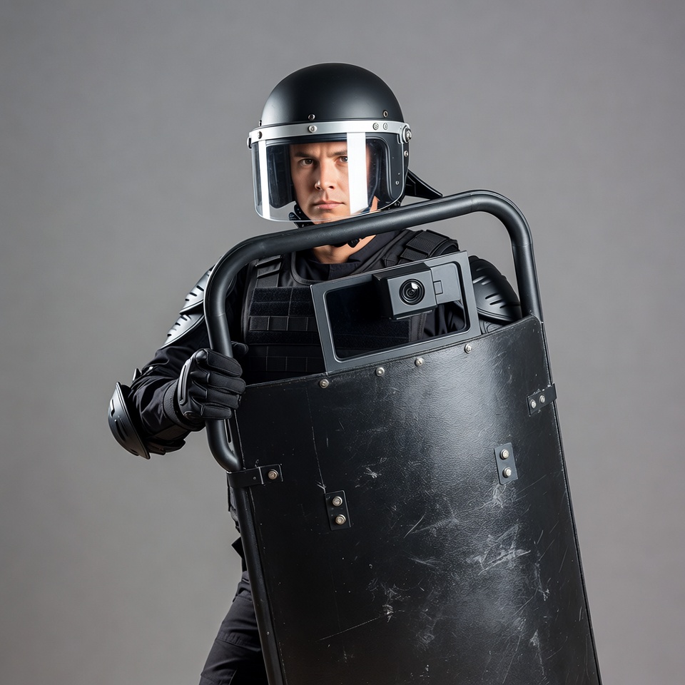 Riot police officer holding shield