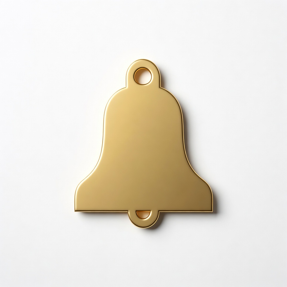 3D, Christmas bell, bell, brass bell, clipart, gold, hanging loop, holiday bell, icon, illustration, isolated, metallic, notification bell, object, render, shiny, white background, golden bell