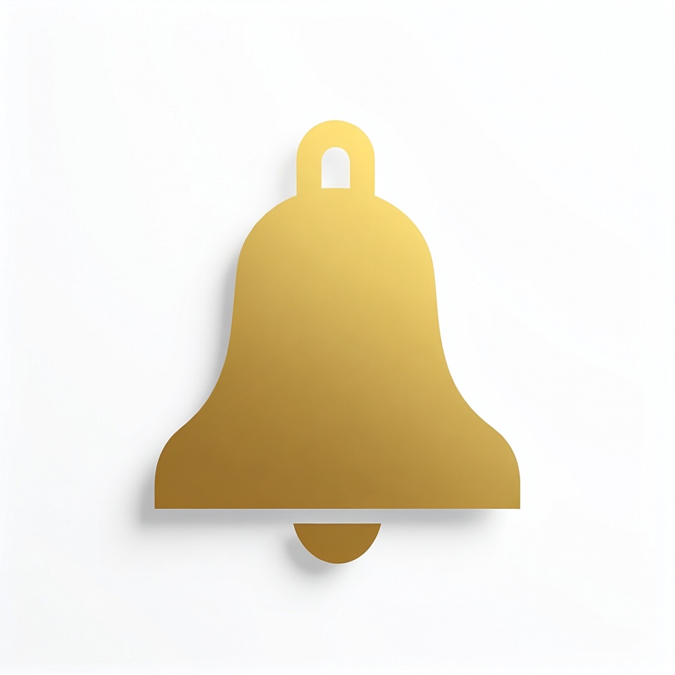 3D shadow, church bell, clipart, gold bell, golden bell, holiday bell, illustration, isolated background, metallic gold, simple icon, vector graphic, white background, yellow bell, bell