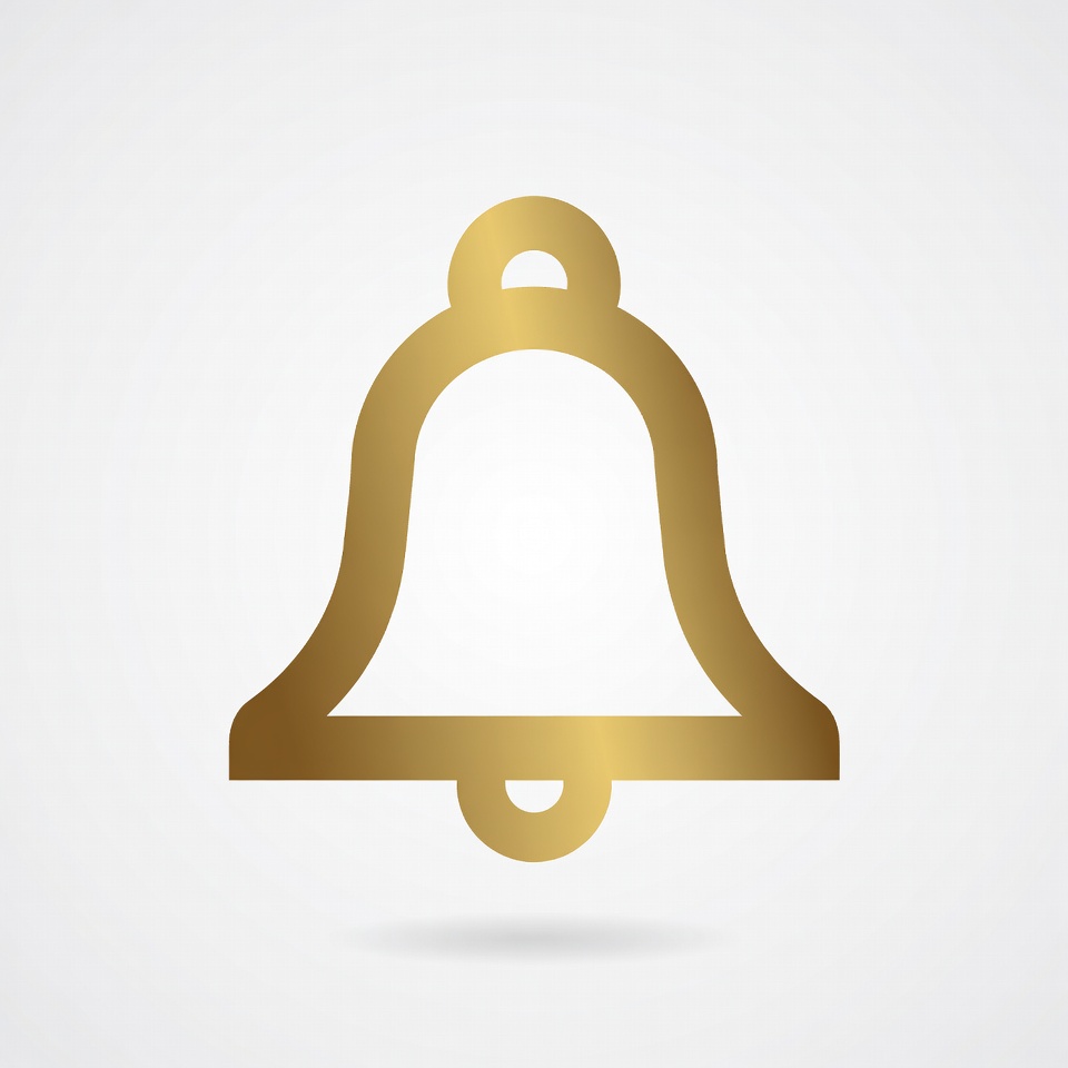 church bell, clapper, clipart, decoration, gold bell, golden bell, holiday bell, icon, illustration, isolated background, metallic, outline, ringing bell, simple, symbol, vector, bell