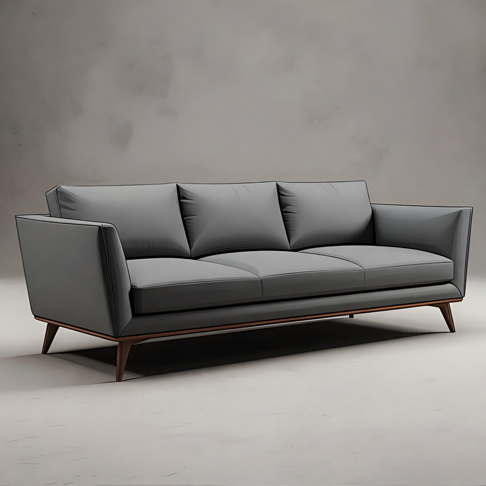 contemporary design, couch, furniture, gray sofa, isolated background, leather sofa, living room furniture, mid-century modern, modern sofa, three seat sofa, upholstery, wooden legs, sofa