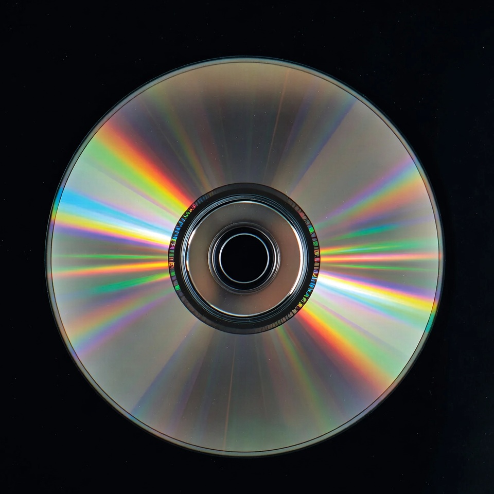 DVD-like, black background, close-up, compact disc, data disc, digital media, disc, holographic, iridescent, isolated, music CD, optical disc, rainbow colors, reflective CD, round disc, shiny disc, silver disc, storage media, CD