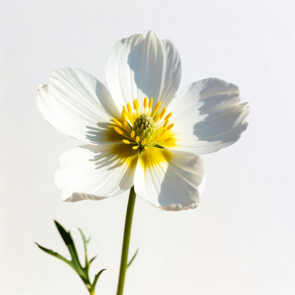 White Anemone Flower on Stem