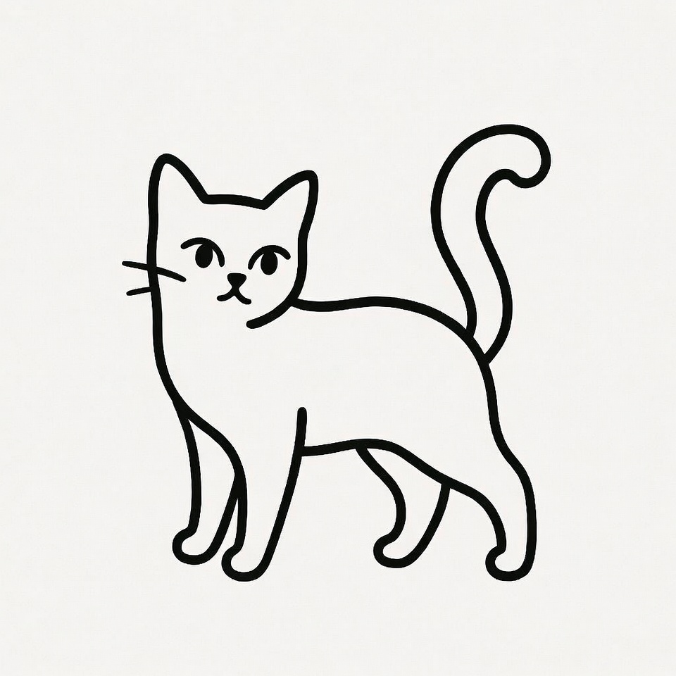 animal, black cat, clipart, cute cat, doodle, ears, feline, illustration, isolated background, line art, outline, simple drawing, sketch, standing cat, tail, vector, whiskers, cat
