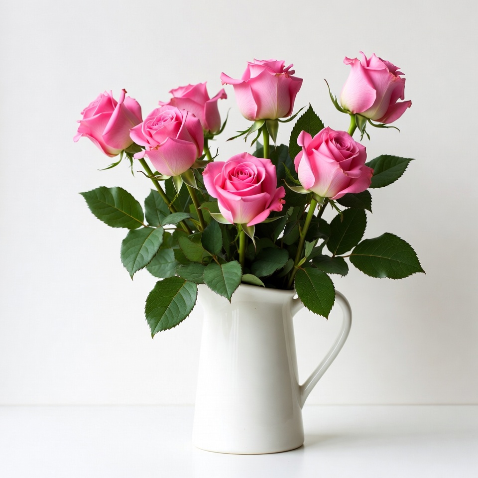 Pink Roses in White Pitcher