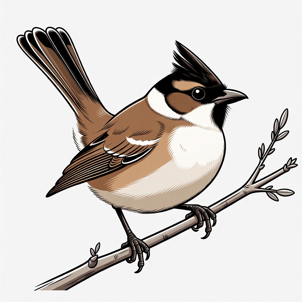 avian, bird feathers, bird illustration, bird on branch, black crest, branch perch, brown bird, clipart, crested bird, detailed bird, european bird, isolated background, nature art, perched bird, songbird, tit bird, vector bird, white bird, wildlife illustration, crested tit