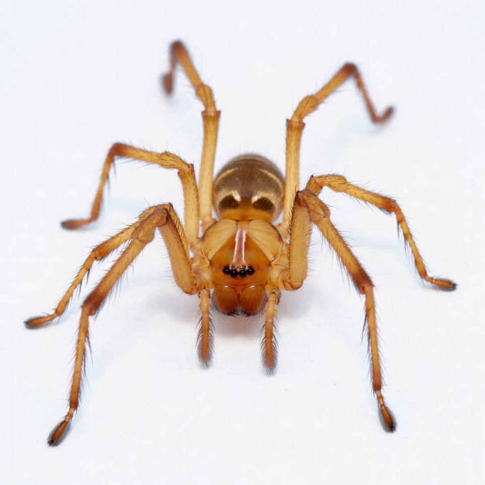 animal, arachnid, close-up, eight legs, eyes, fangs, hairy legs, insect-like, long legs, macro photography, orange spider, shiny abdomen, spider, white background, wolf spider