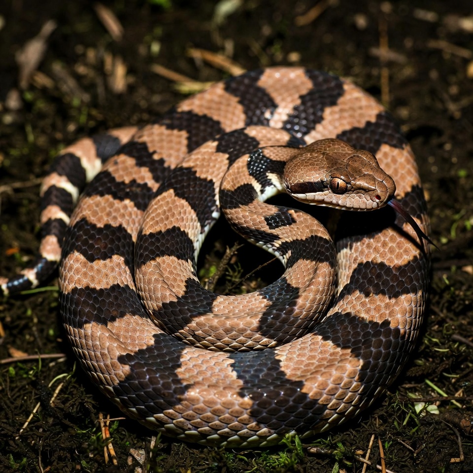 Coiled Brown Striped Snake