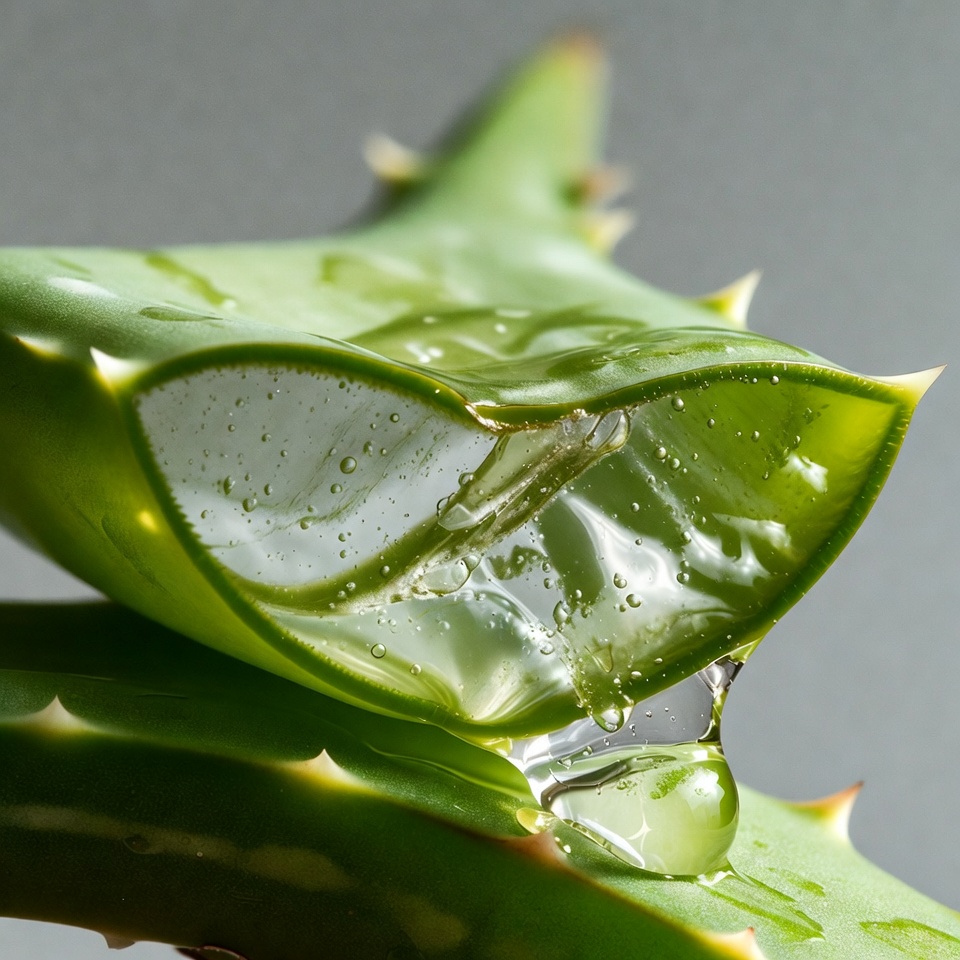 Split Aloe Vera Leaf with Water Droplets