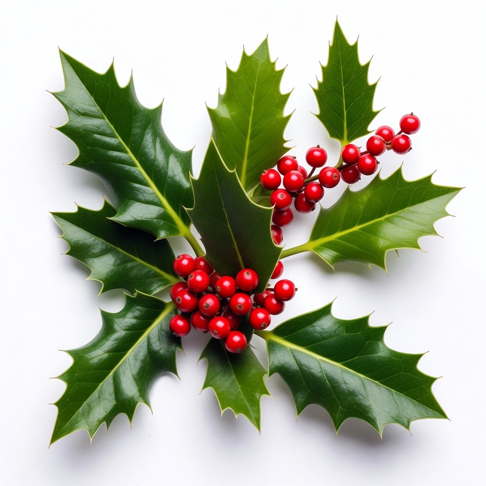 Holly Leaves with Red Berries