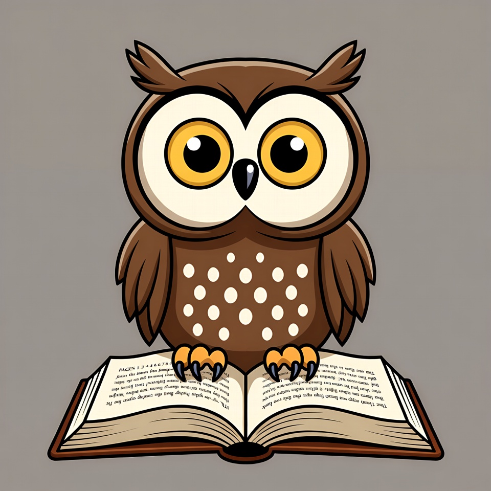 Cartoon Owl Reading Book