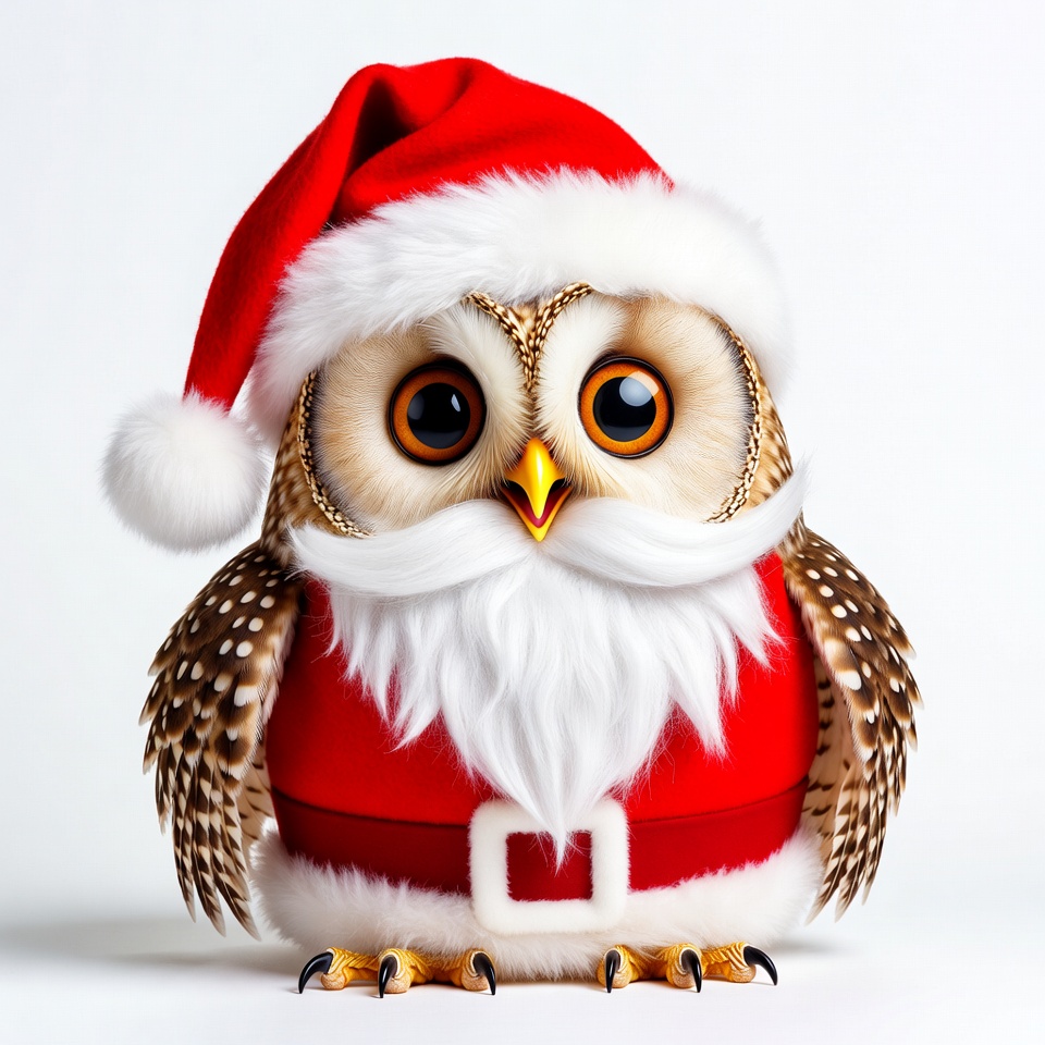 Owl Wearing Santa Hat and Suit