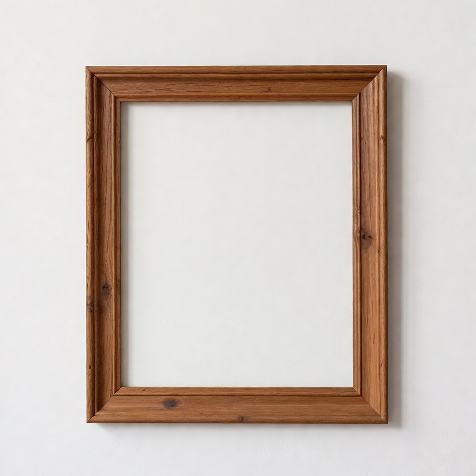 brown frame, decorative frame, empty, empty frame, frame, hanging frame, isolated background, ornate frame, picture frame on wall, wall, white wall, wood, wood frame, wooden frame, picture frame