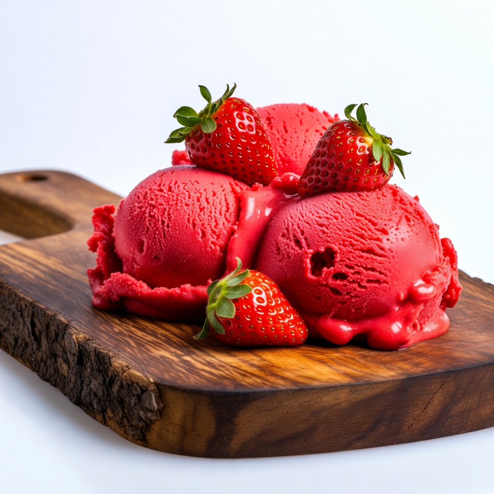 Strawberry Ice Cream Scoops on Wooden Board