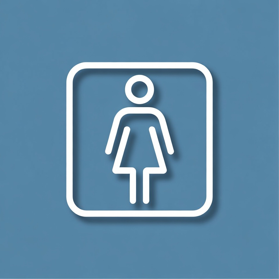 bathroom symbol, blue background, clipart, dress figure, female, female icon, gender symbol, illustration, isolated background, ladies sign, restroom sign, square frame, stick figure, toilet sign, unisex no, wc icon, white line art, woman silhouette, women's symbol