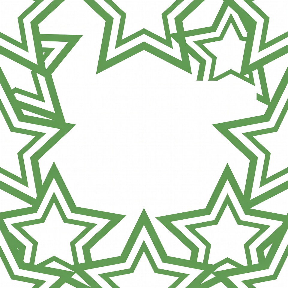 angular stars, clipart, decorative frame, geometric stars, illustration, isolated background, layered stars, outline stars, star border, star frame, star wreath, vector graphic, white background, green stars
