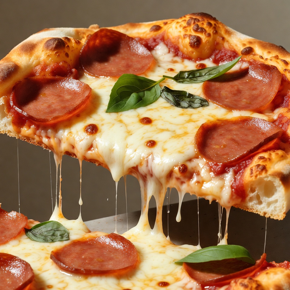 Pepperoni Pizza Slice with Melting Cheese