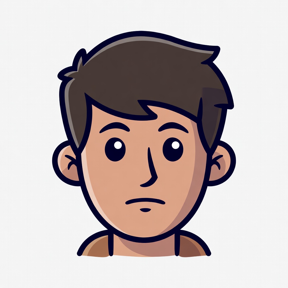 anime style, avatar, big eyes, brown hair, clipart, emoji-like, face, illustration, isolated background, line art, male, man, neutral expression, portrait, short hair, simple drawing, straight mouth, vector, young man, cartoon man
