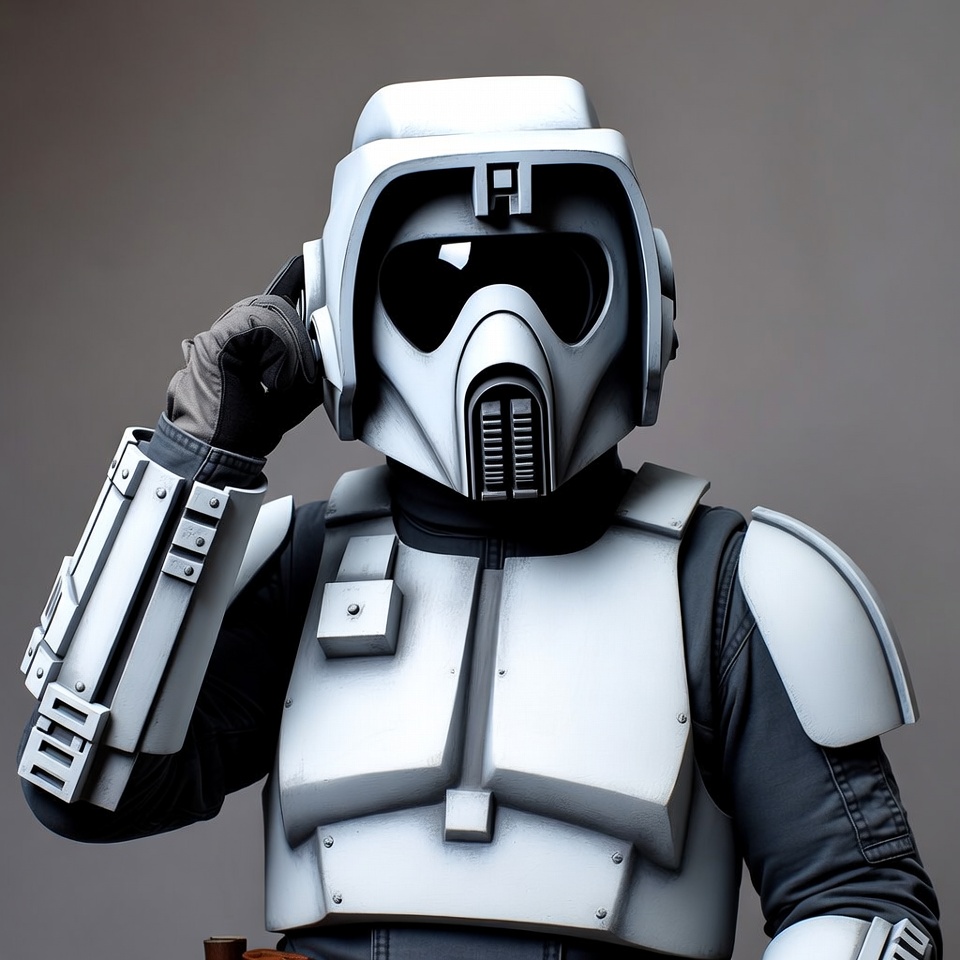 Imperial trooper, Star Wars, arm guards, black visor, cosplay, futuristic armor, gloved hand, gray background, helmet, isolated background, salute, sci-fi soldier, shoulder pads, white armor, Stormtrooper