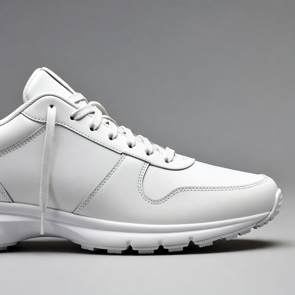 athletic shoes, casual sneakers, clean design, fashion footwear, footwear, gray background, isolated background, lace-up sneakers, leather shoes, low-top sneakers, minimalist shoes, padded collar, rubber soles, running shoes, shoes, side view, sneakers, sport shoes, white shoes, white sneakers