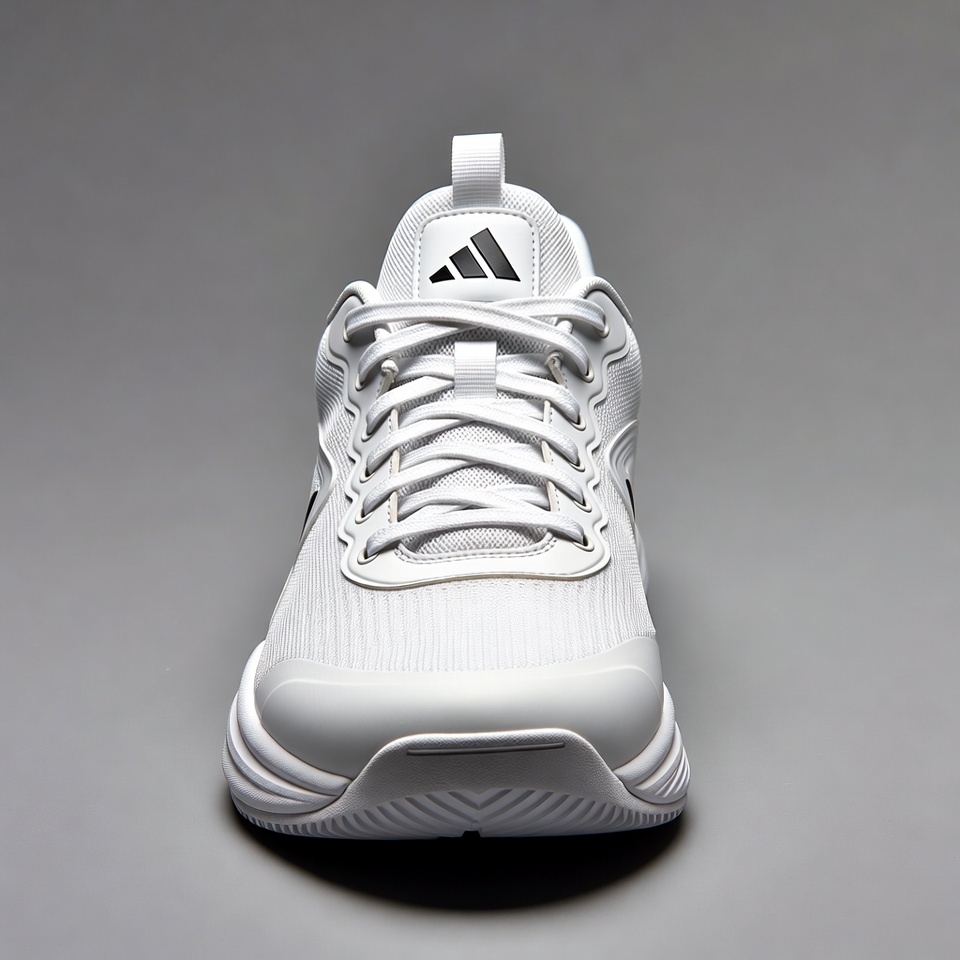 Adidas, athletic, athletic footwear, black logo, cushioned sole, fitness footwear, front view, gym shoes, isolated background, laced shoes, mesh sneakers, running, running shoes, shoes, sneakers, sport shoes, sporty, training shoes, white, white sneakers, Adidas shoes